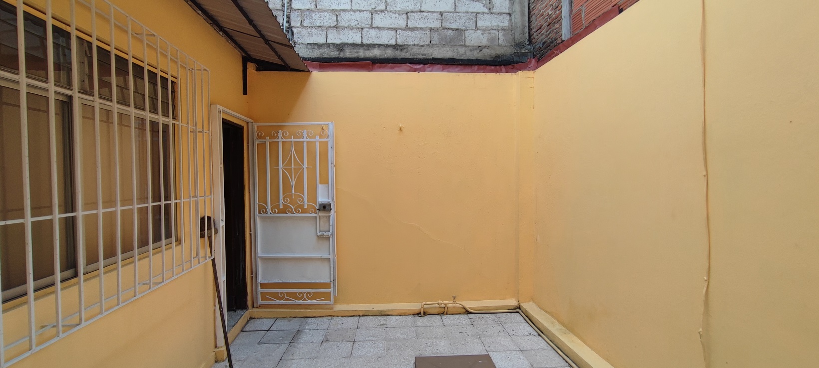 En planta baja, un departamento con: Sala comedor, baño de visitas, cocina con anaqueles. Dos dormitorios, un baño completo, y un patio pequeño con cisterna.