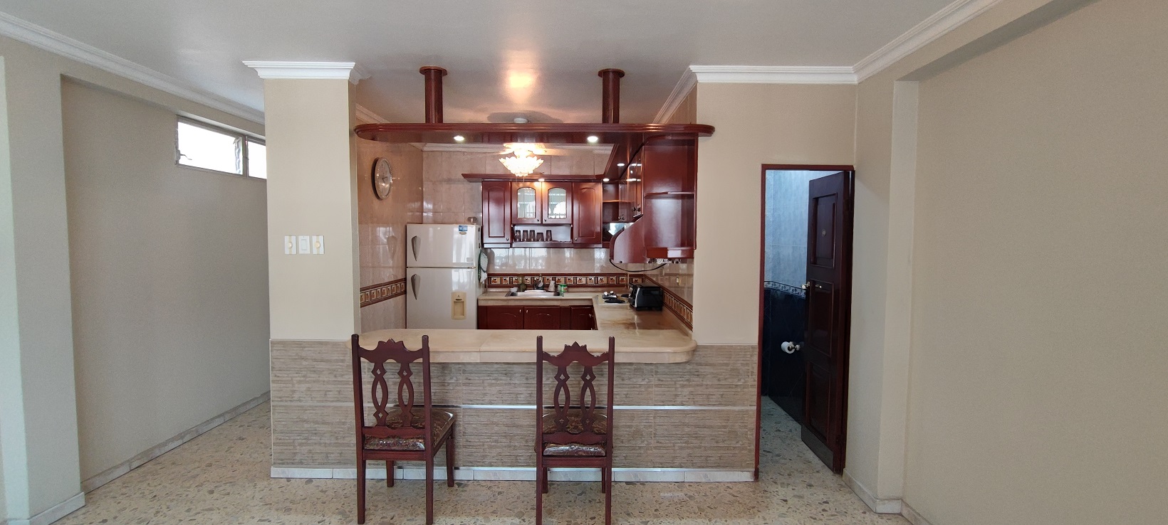 En la primera planta alta, un departamento con: Balcón, sala comedor, cocina con anaqueles, dos dormitorios cada uno con baño independiente,